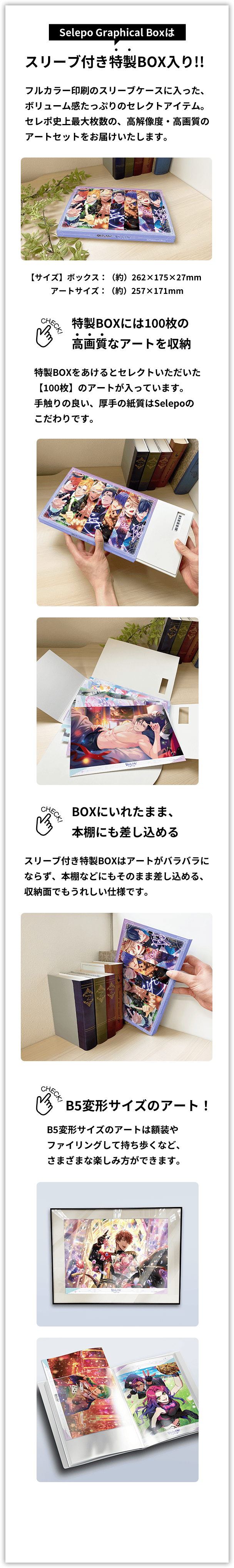 The Selepo Graphical Box delivers your own custom lineup in a massive and voluminous set of 100 prints!